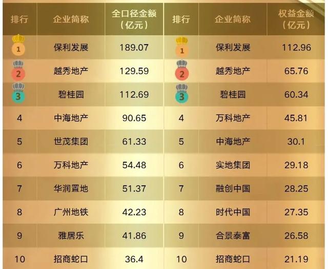 如上所示,无论是全口径销售额,还是权益销售额,保利发展都稳居广州市场的冠军,并和第二名显著拉开差距。